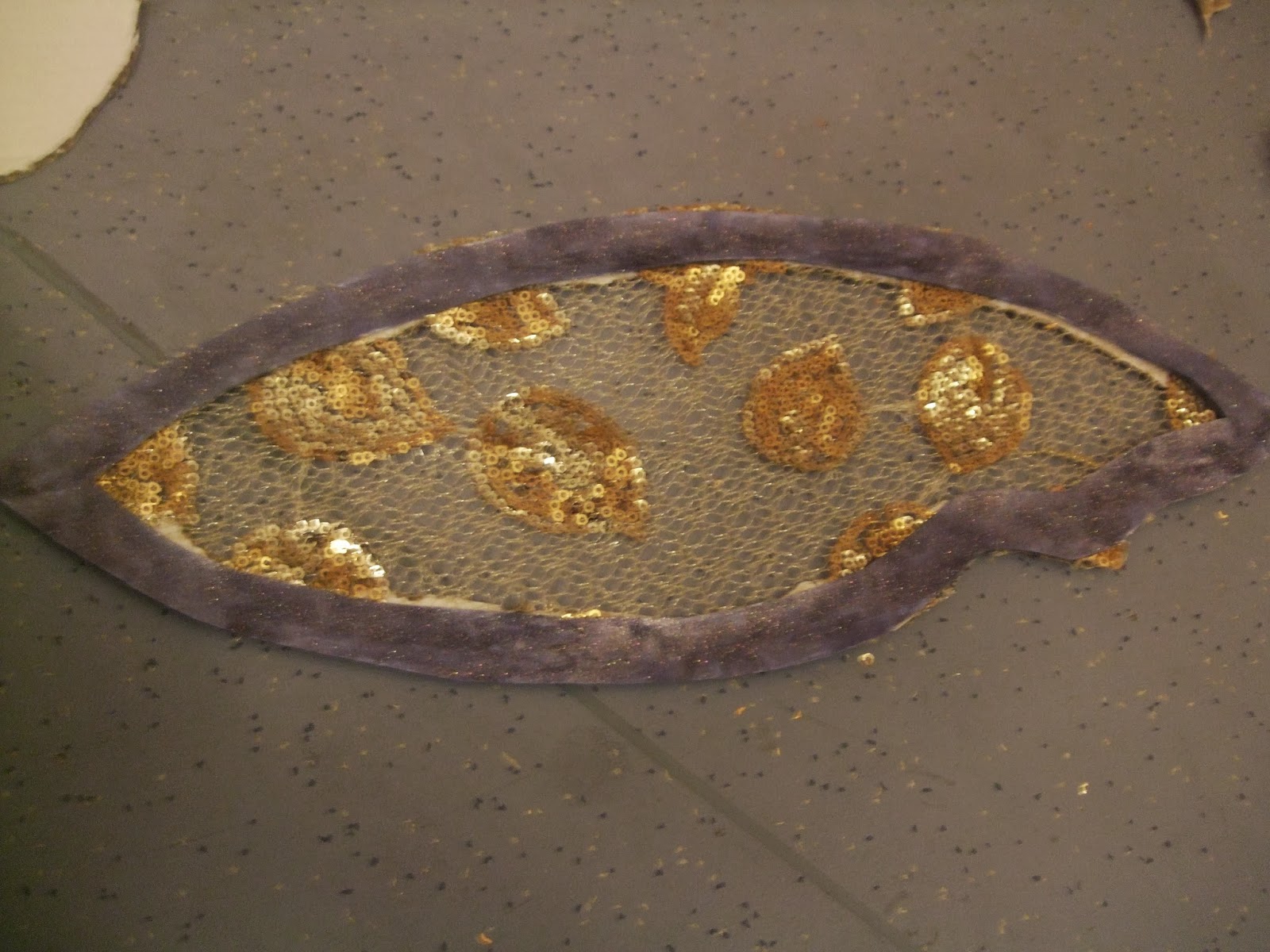 - nun bestreicht man die Teilflügel mit Kleber und legt den Stoff drüber ( am Besten einen Durchsichtigen zarten Stoff)