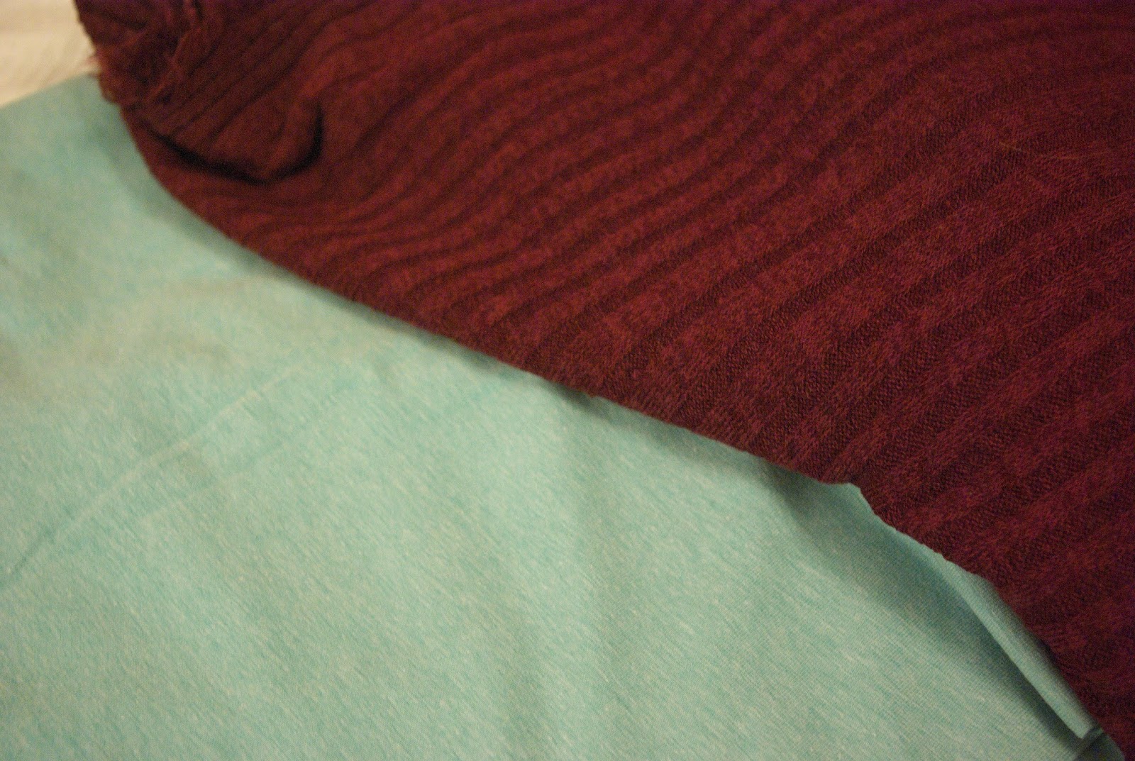 Es liegen hier noch einige weitere mint und türkisfarbene Stoffe auf Vorrat. Daran habe ich mal ein paar Kombination probiert.