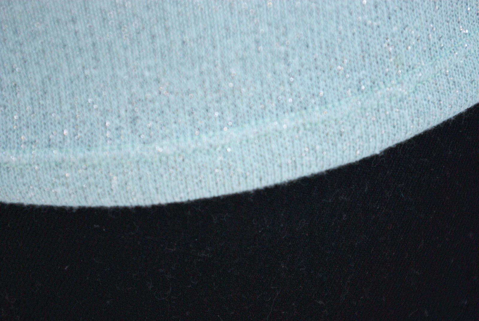 Ein mintgrüner Glitzersweater, in schöner schlichter Pulli, der durch das Glitzer auch schicker aussehen kann. Auch wenn er auf den Bildern etwas bläulicher wirkt. In echt ist dies viel türkiser.